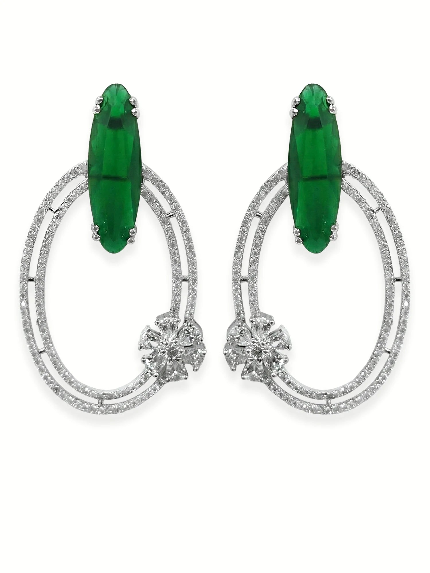 Trendy Oval Loop Green American Diamond Silver-Plated Drop Earrings for Women